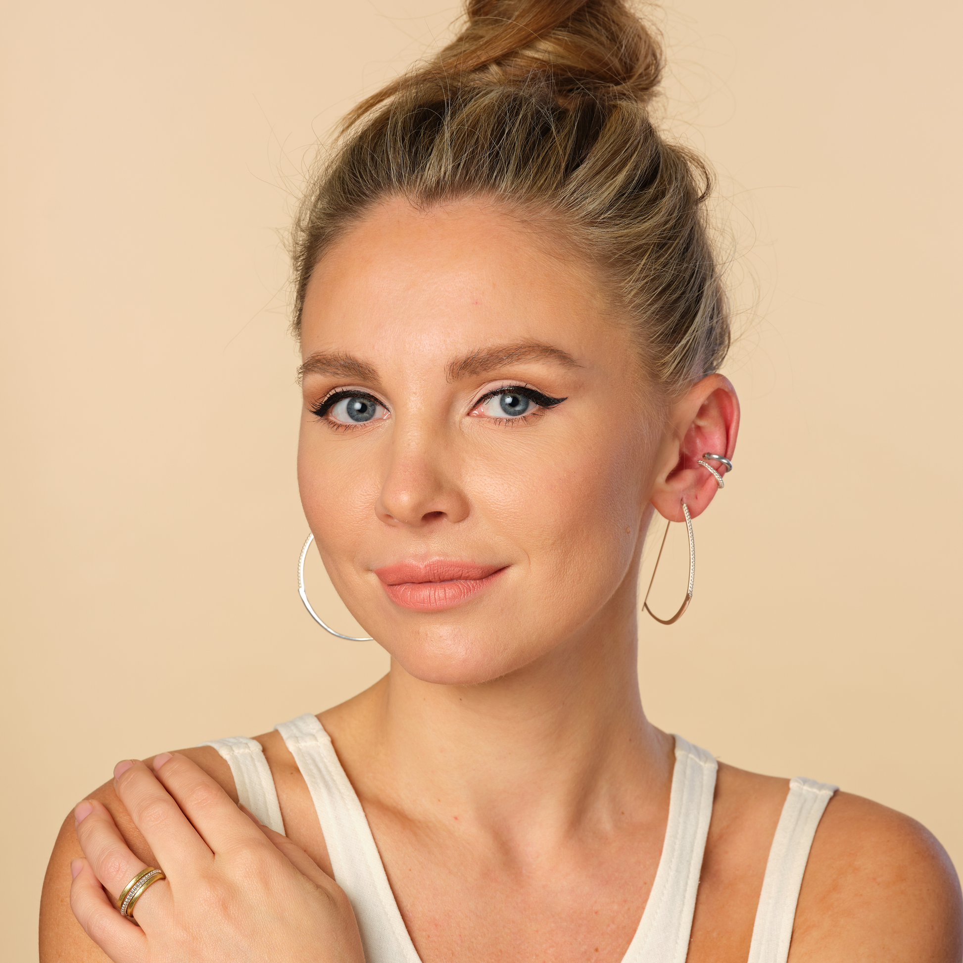 This piece is made with precious metal and does not contain our signature Peacebomb Aluminum material. The level of detail of the design could not be achieved with our unique metal. We recommend it layered with our Solar and Plain Ear Cuffs or the Set. While the metal differs from the range of our collections, the impact is the same in creating skilled labor craftwork and clearing UXO from land in Laos.