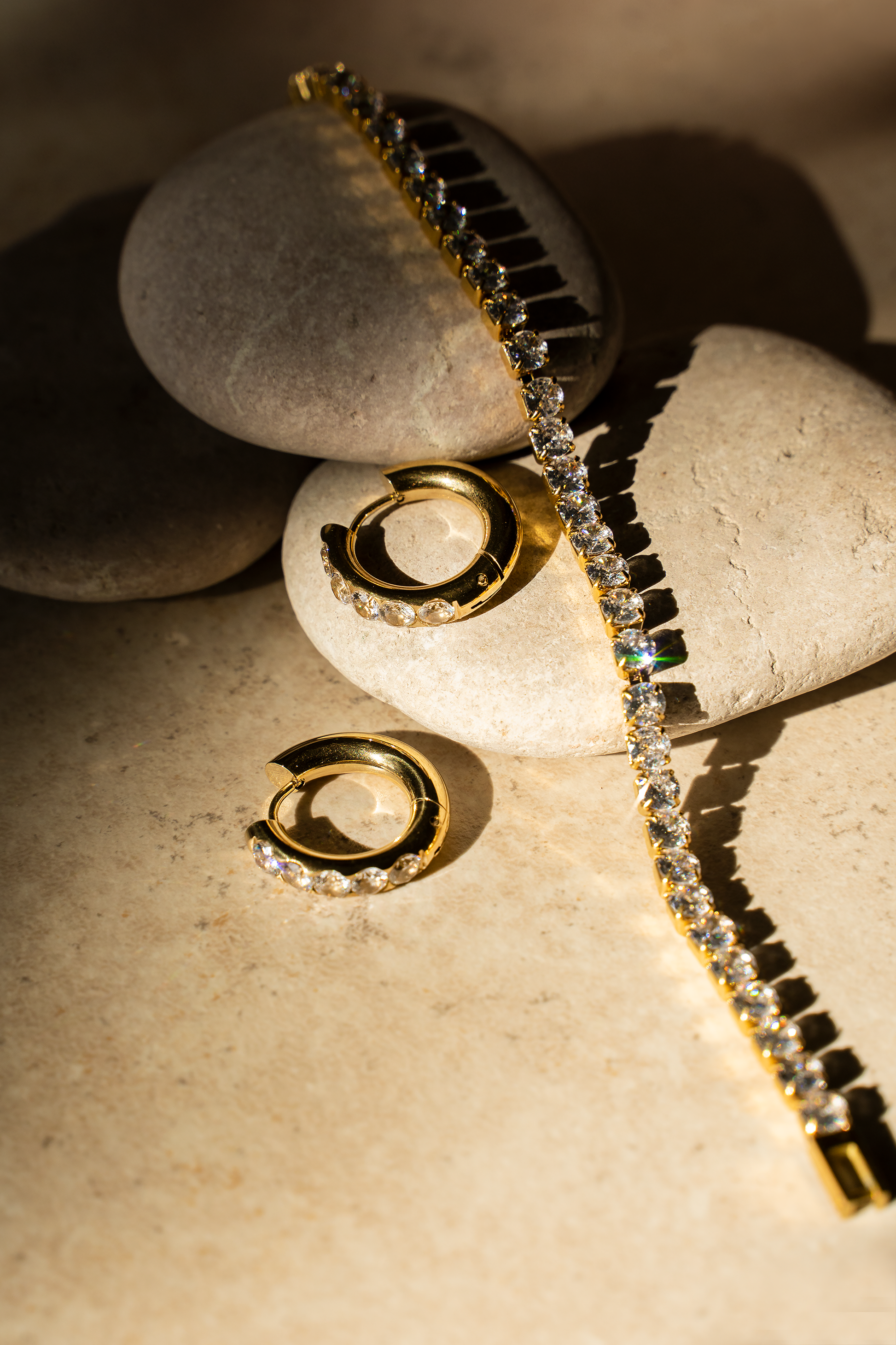 Our Shela Earrings set the trend for the classic hoop reimagined with unique style, perfect for adding a chic look to your Ear Party collection or worn solo. These hollow tubular hoops sparkle with round brilliant cut cubic zirconia on the front, illuminating the face with fire and light.